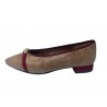 MANOLETA DE MUJER FABRICADA EN TEJIDO E INTERIOR FORRO PIEL. LAZO, VIRA Y TACON FORRADOS EN PIEL DE ANTE. TACON 3CM. COKO GALVEZ.