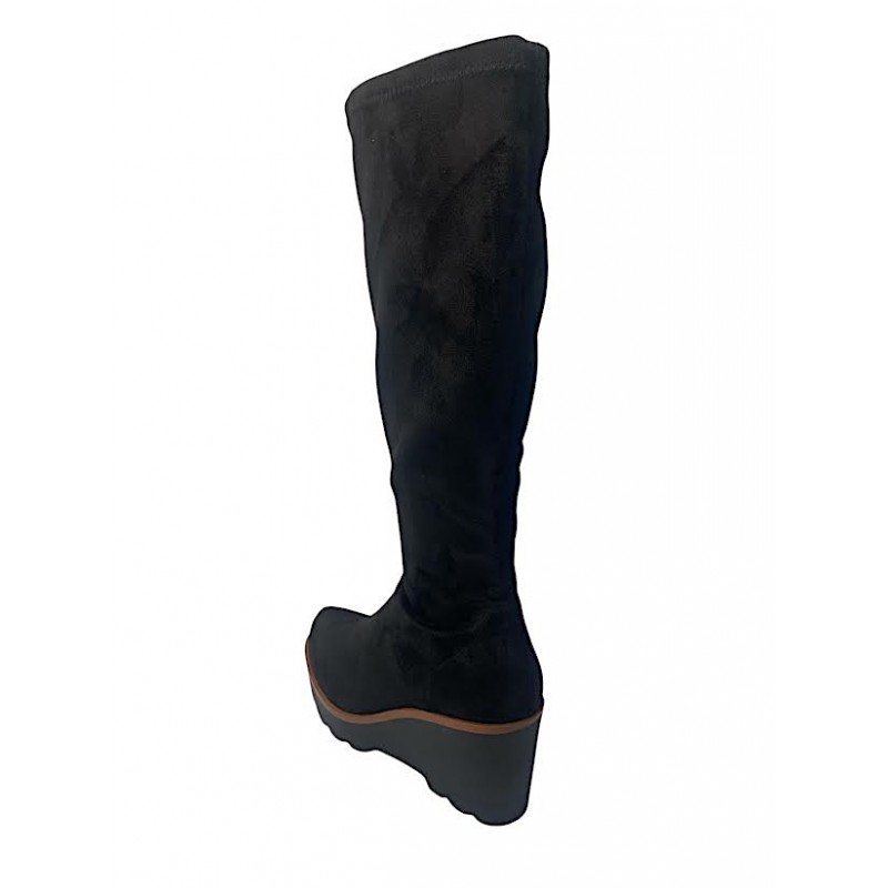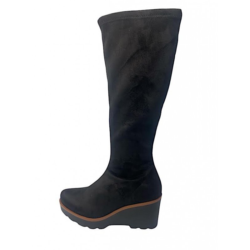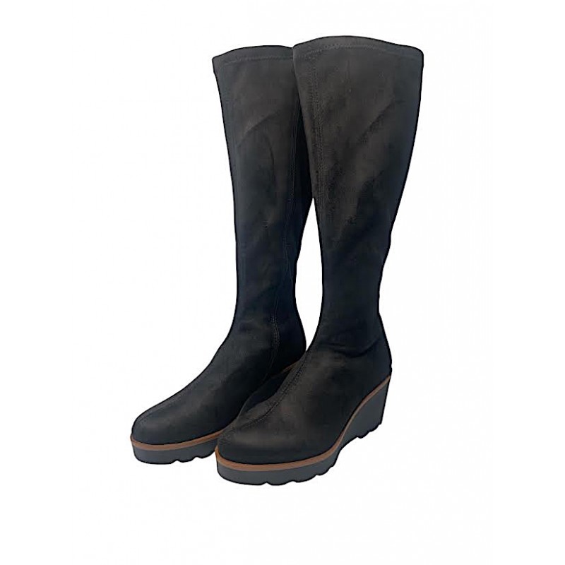 BOTA ALTA DE MUJER FABRICADA EN GAMUZA ELASTICA E INTERIOR PLANTILLA PIEL. CAÑA ELASTICA CON CIERRE EN CREMALLERA Y CUÑA MUY LIGERA DE POLIURETANO, DE 7.5CM APROX DE ALTURA Y 3.5CM DE PLATAFORMA. COKO GALVEZ.Recipiente :