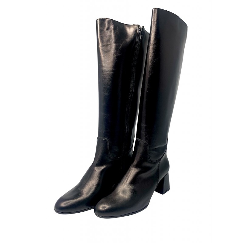 BOTA ALTA DE MUJER FABRICADA EN PIEL E INTERIOR FORRO TERMICO Y PIEL. MODELO BASICO CON CIERRE EN CREMALLERA Y PUNTERA LEVEMENTE REDONDEADA. ELASTICO VERTICAL EN LA PARTE POSTERIOR PARA MEJOR AJUSTE. TACON FORRADO DE ALGO MAS DE 6CM, MAS ANCHO EN LA PARTE INFERIOR, Y SUELA DE GOMA. COKO GALVEZ.Recipiente :