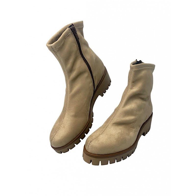 BOTIN DE MUJER FABRICADO EN GAMUZA ELASTICA E INTERIOR PLANTILLA PIEL. CIERRE CON CREMALLERA Y SUELA GRUESA DE GOMA CON TACOS ANTIDESLIZANTE. COKO GALVEZ.