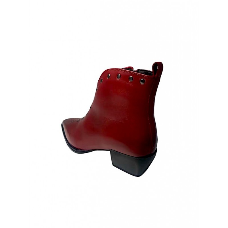 BOTIN DE MUJER FABRICADO EN PIEL E INTERIOR FORRO TERMICO Y PIEL. MODELO DE AIRE TEJANO CON TACHAS METALICAS Y ESCOTE EN FORMA DE V MUY FAVORECEDOR. SUELA DE GOMA Y TACON DE 5CM APROX. COKO GALVEZ.Recipiente :