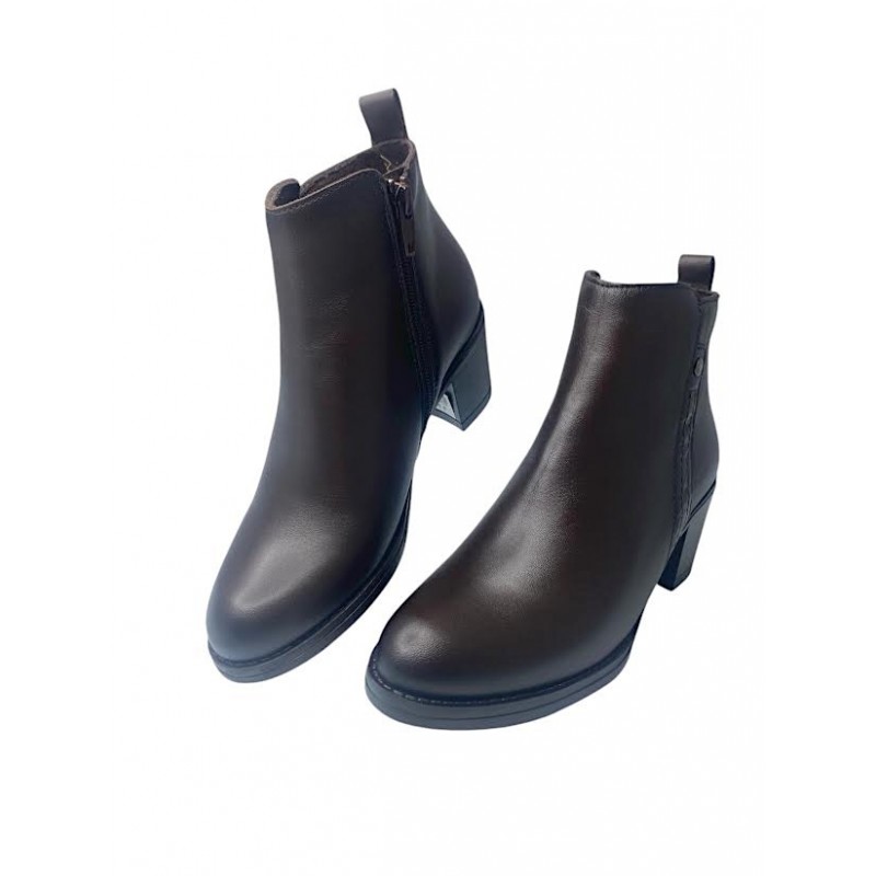 BOTIN DE MUJER FABRICADO EN PIEL E INTERIOR FORRO TERMICO Y PIEL. MODELO BASICO CON ADORNO DE TIRAS EN PIEL DE ANTE EN EL LATERAL. SUELA Y TACON COMPLETO DE GOMA MUY CONFORTABLE Y ALTURA DE UNOS 6CM APROX. COKO GALVEZ.Recipiente :