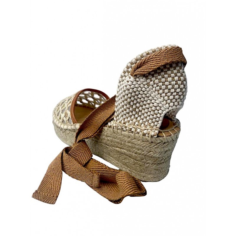 ESPARTO DE MUJER FABRICADO EN PIEL CON PLANTILLA DE GEL MUY COMODO. ORIGINAL MODELO CON CUERDA ENTRELAZADA Y ATADO CON CINTA AL TOBILLO. ALTURA DE 6CM APROX Y PLATAFORMA DE 3CM. FABRICACION ARTESANAL Y HECHO EN ESPAÑA. COKO GALVEZ.Recipiente :