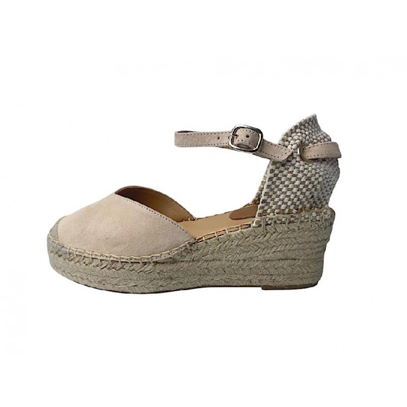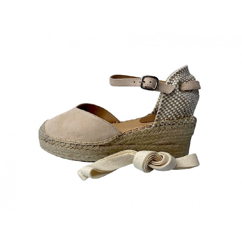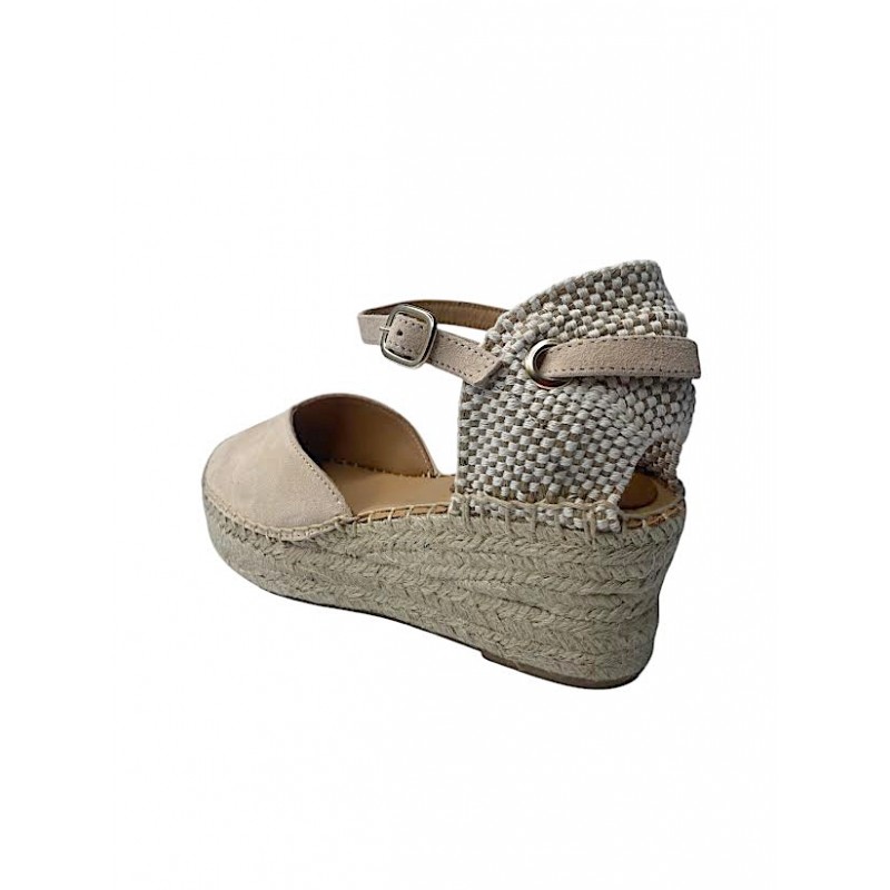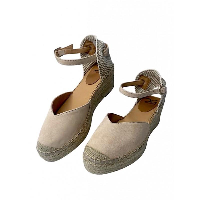 ESPARTO DE MUJER FABRICADO EN PIEL DE ANTE E INTERIOR FORRO PIEL CON PLANTILLA DE GEL EXTRA COMODO. MODELO CON ESCOTE EN V MUY FAVORECEDOR Y CON OPCION DE CIERRE CON PULSERA O CINTA. CUÑA DE CUERDA NATURAL DE 6CM Y 3CM DE PLATAFORMA APROX. FABRICACION ARTESANA Y HECHO EN ESPAÑA. COKO GALVEZ.Recipiente :