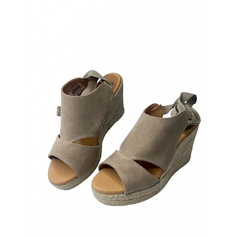 ESPARTO DE MUJER FABRICADO EN PIEL DE ANTE E INTERIOR FORRO PIEL CON PLANTILLA DE GEL MUY COMODA. MODELO DE PUNTERA ABIERTA Y ABOTINADO QUE CIERRA EN EL TALON CON CINTA. CUÑA DE CUERDA NATURAL DE 9.5CM Y PLATAFORMA DE 2.5CM APROX. FABRICACION ARTESANAL Y HECHO EN ESPAÑA. COKO GALVEZ.Recipiente :