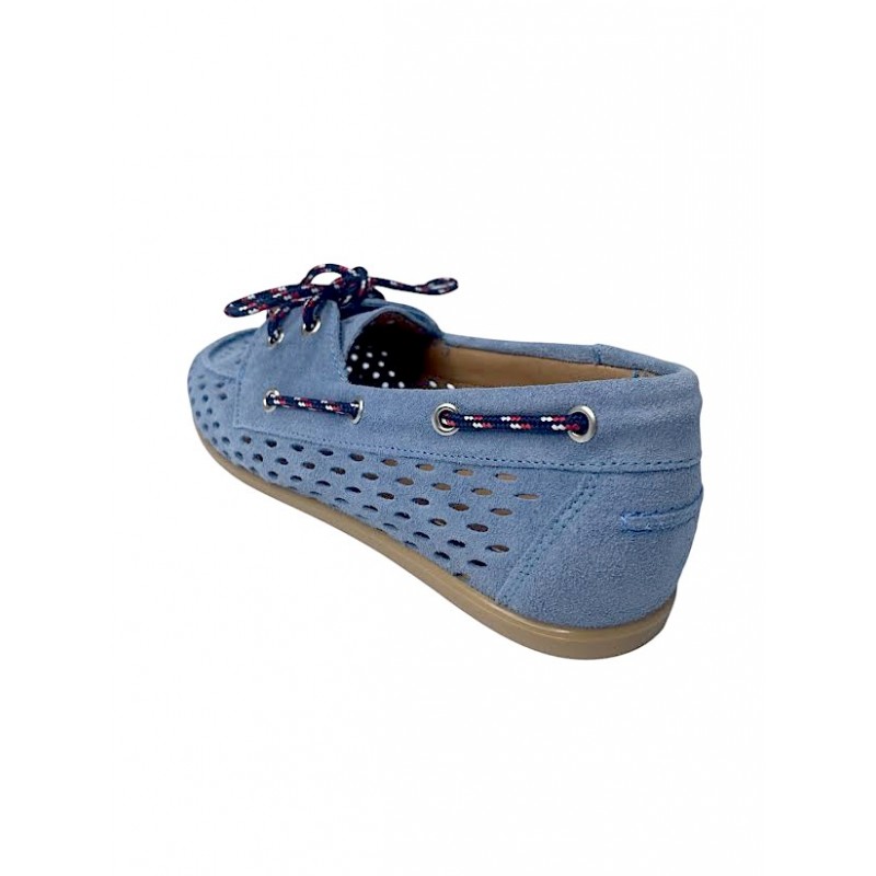 MOCASIN DE MUJER FABRICADO EN PIEL DE ANTE E INTERIOR FORRO PIEL. MODELO PERFORADO IDEAL PARA PRIMAVERA Y VERANO, CON CORDON DE COLORES Y SUELA DE GOMA. COKO GALVEZ.Recipiente :