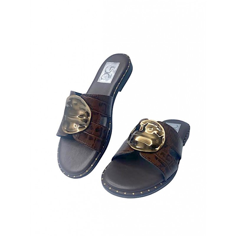 SANDALIA DE MUJER FABRICADA EN PIEL LABRADA COCO E INTERIOR FORRO PIEL CON PLANTILLA DE GEL EXTRA COMODA. PALA CON ABERTURAS LATERALES Y BONITA CHAPA CIRCULAR CENTRAL. TAQUITAS BORDEANDO LA SANDALIA Y SUELA DE GOMA. COKO GALVEZ.Recipiente :