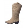 BOTA COWBOY DE MUJER FABRICADA EN PIEL DE ANTE E INTERIOR FORRO TERMICO Y PIEL. BORDADOS EN EMPEINE Y CAÑA Y UN TACON ANCHO CUBANO DE 7CM APROX. COKO GALVEZ.