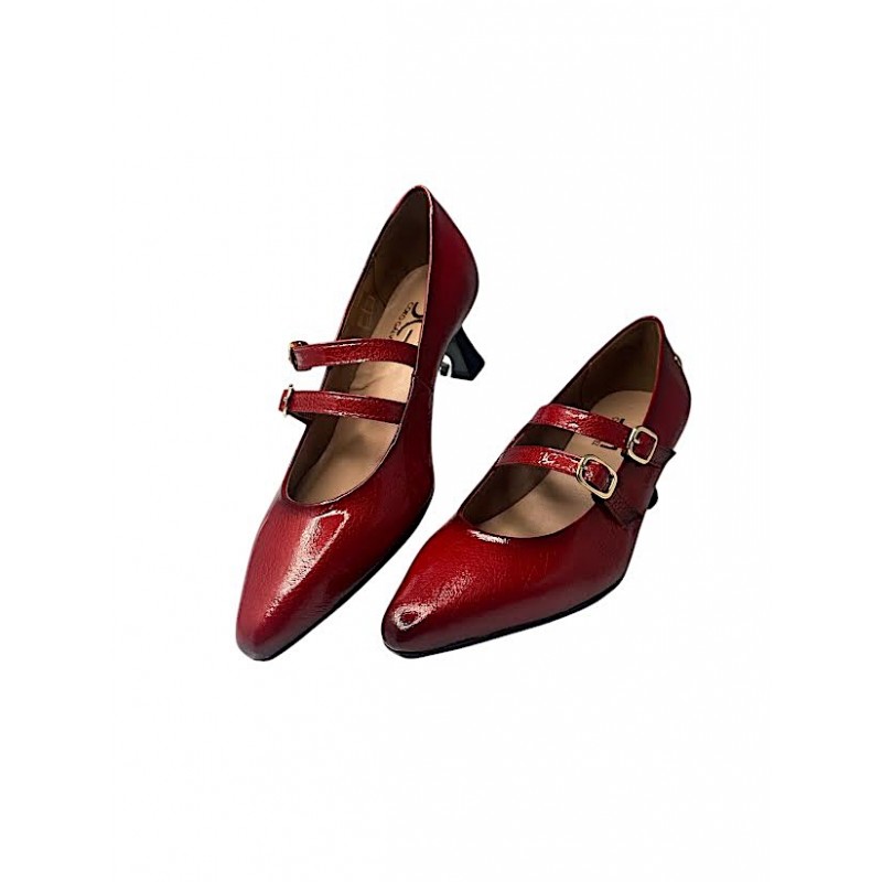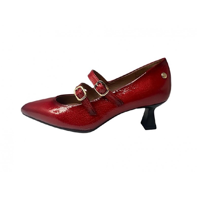 SALON FABRICADO EN PIEL PRIMULA E INTERIOR FORRO PIEL. BONITO MODELO CON DOS TIRAS CON CIERRE EN HEBILLA Y TACON NACARADO EN NEGRO DE ESTILO CARRETE DE ALGO MAS DE 5.5CM. SUELA DE GOMA ANTIDESLIZANTE. COKO GALVEZ.Recipiente :