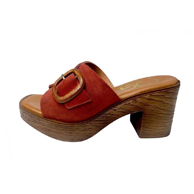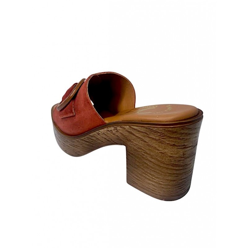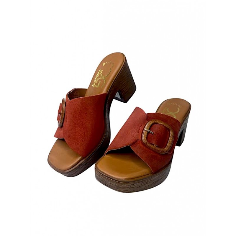 ZUECO DE MUJER FABRICADO EN PIEL DE ANTE E INTERIOR FORRO PIEL. PLATAFORMA Y TACON EN UN SOLO BLOQUE DE POLIURETANO MUY LIGERO. PLANTA DE GEL Y ADORNO DE HEBILLA MADERA EN LA PALA. TACON DE 7.5CM APROX Y PLATAFORMA DE 3CM. COKO GALVEZ.Recipiente :